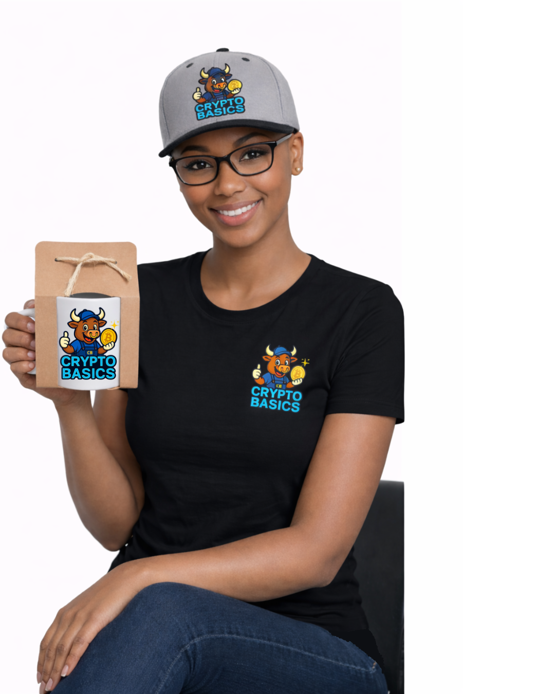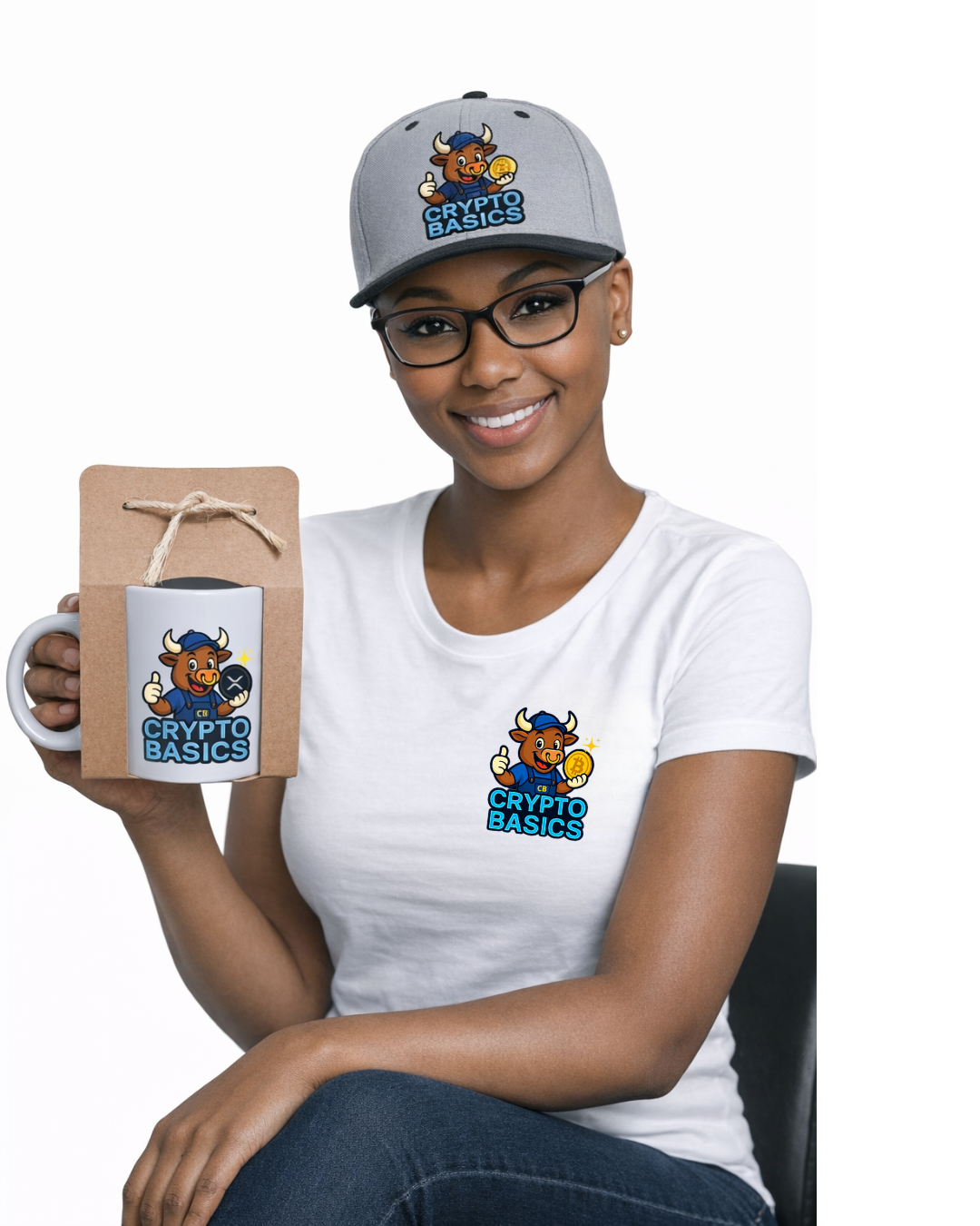 Composto por caneca, boné e camiseta feminina, o kit une design moderno, conforto e identidade, refletindo o espírito do universo cripto de forma autêntica e funcional.